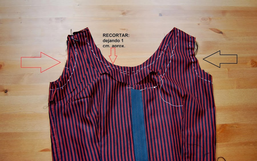 Recortamos las vistas y el escote a 1 cm. aproximadamente.