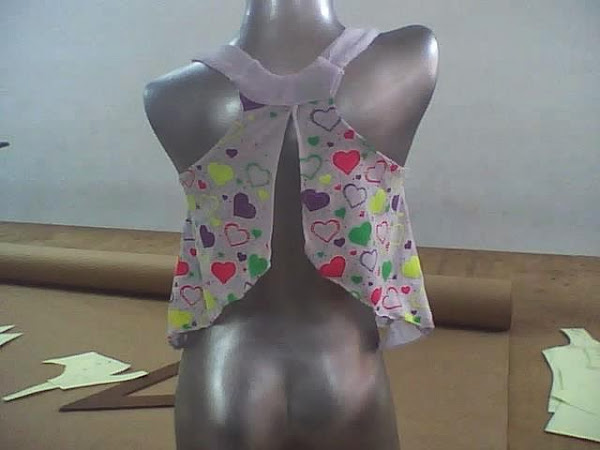 trazamos curva desde los 5 cm que bajamos por el dobles, hasta llegar al costado de la blusa. ( observa la parte de atrás )