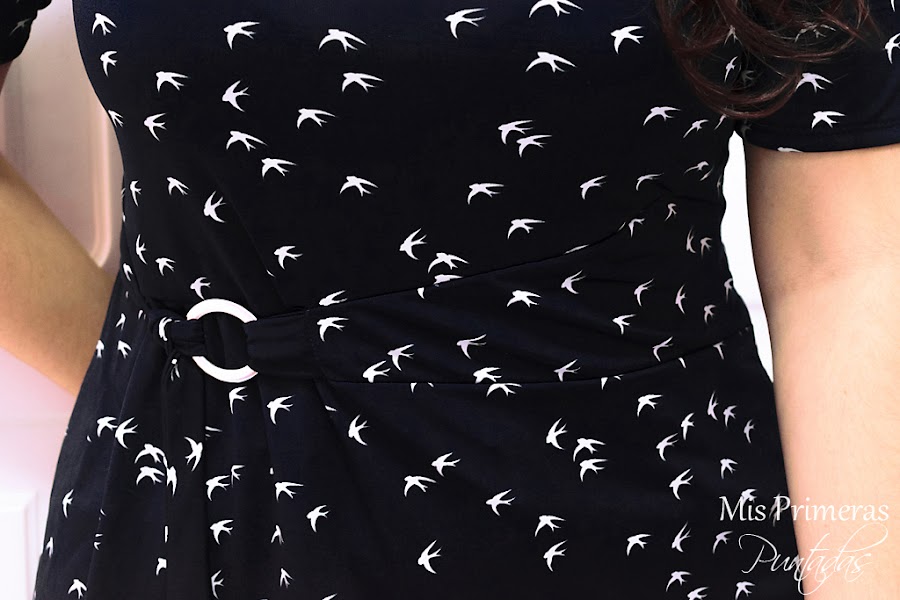 En la cintura decidí ponerle una anilla de La Tienda del Botón que ya tenía en casa y que me vino como anillo al dedo. Siempre es bueno tener cositas de mercería chulas porque una nunca sabe A) cuándo las va a necesitar y B) si va a tener paciencia suficiente para parar de coser y salir a comprar.