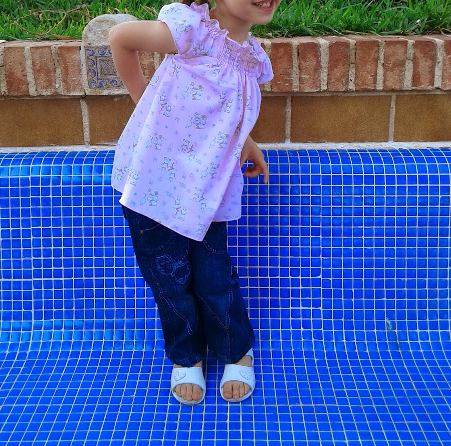 Me pareció un reto al ver el esquema de la blusa, pero una vez que te pones se hace enseguida y sin dificultad. Nunca habia cosido este tipo de mangas y me sorprendió por lo fáciles que son de coser.