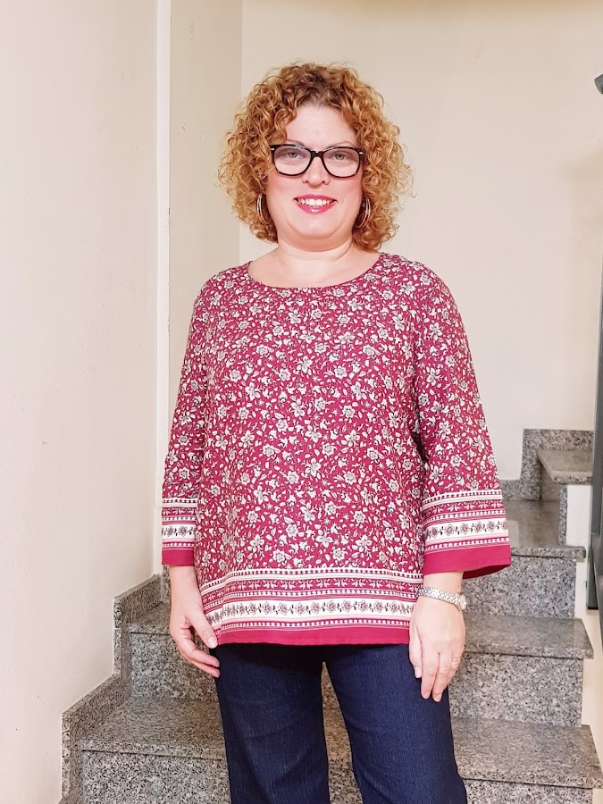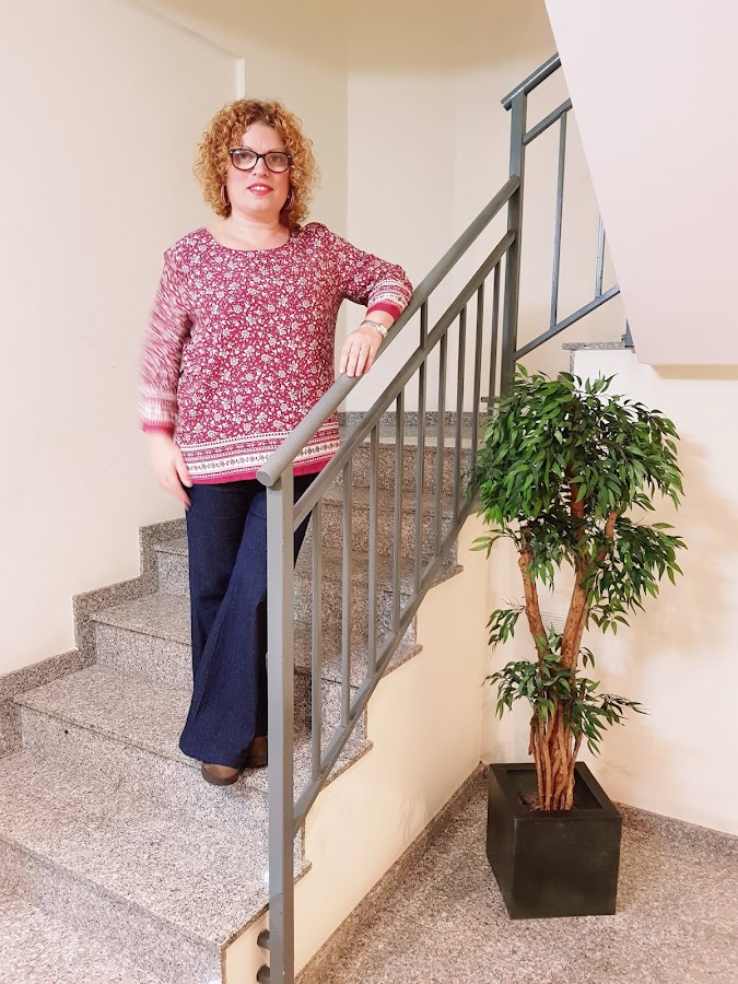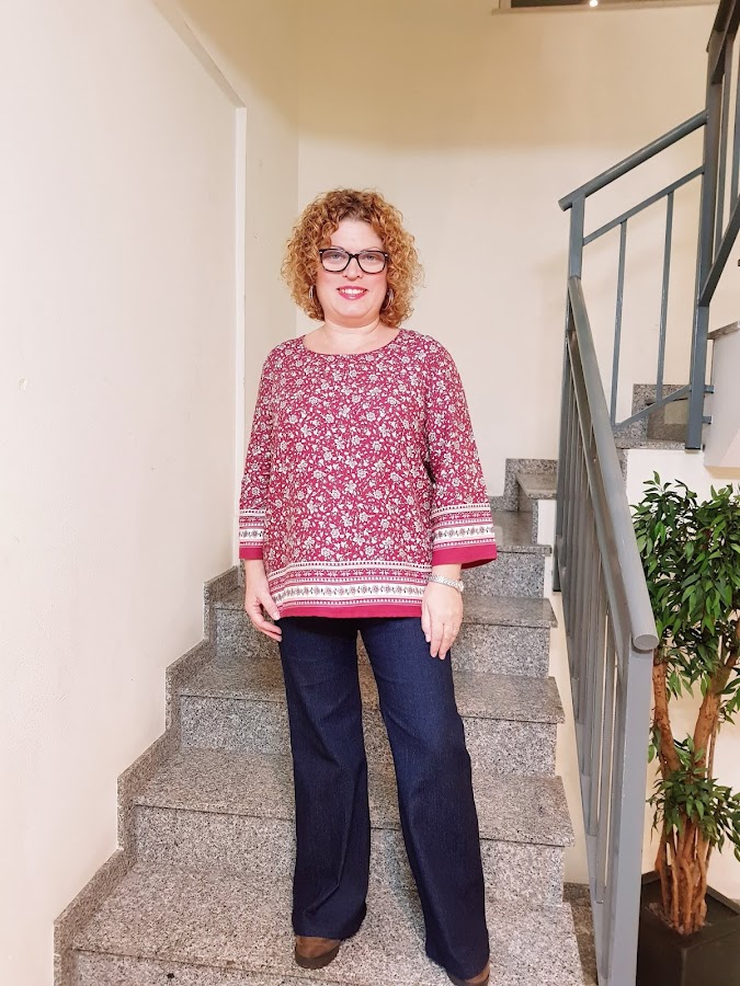 Me encanta esta blusa y la he combinado esta vez con los pantalones tejanos de campana que cosi el invierno pasado.