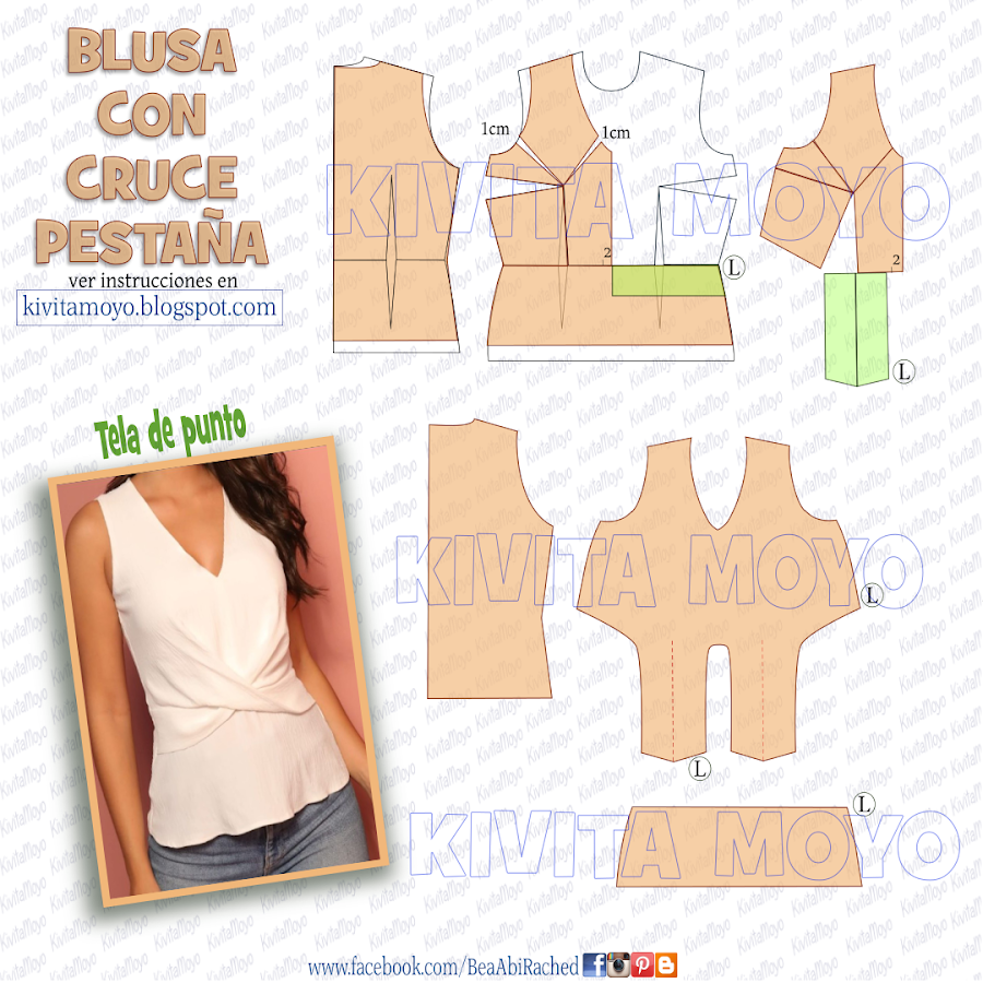 El principio es el mismo de los falsos nudos, o sea se provoca un espacio para un drapeado, solo que en este caso se evitara el paso del retorcido. Utilizar telas de punto y/o elongacion