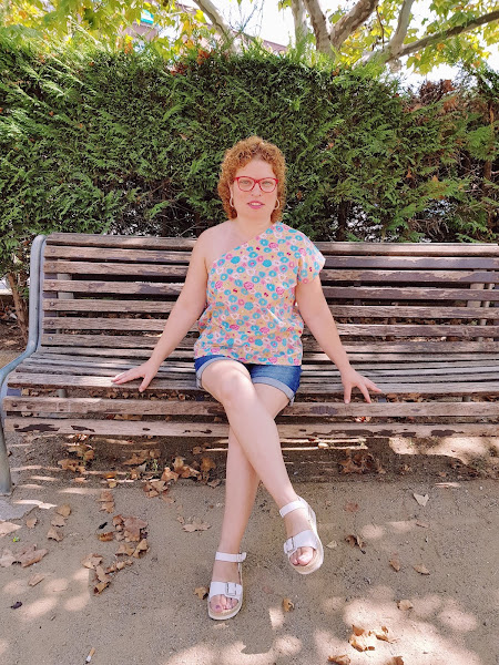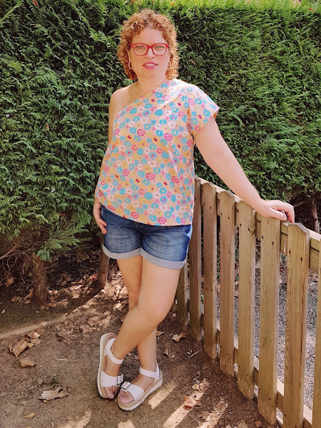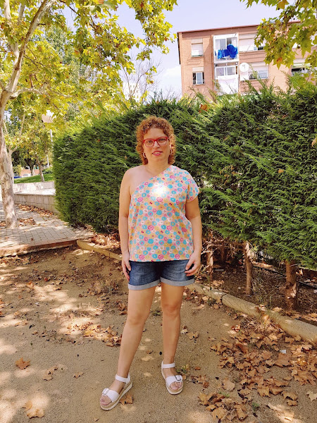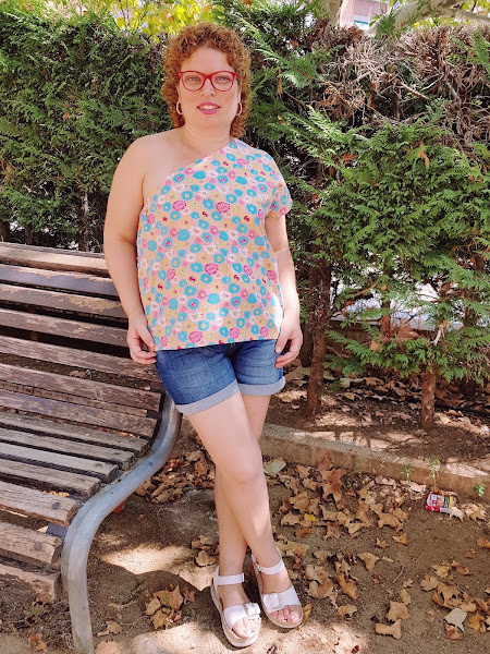 Experimentando con los patrones me anime a realizar un patron de corte asimetrico , de esos que dejan un hombro al descubierto y este es el resultado , una blusa la mar de bonita.