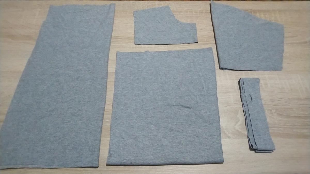 Empezamos cortando todas las partes de la blusa, delantero, trasero, mangas y bies del contorno de escote: