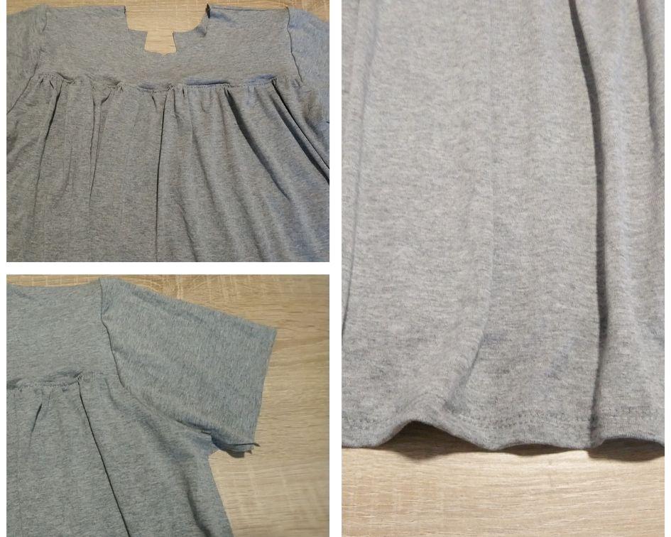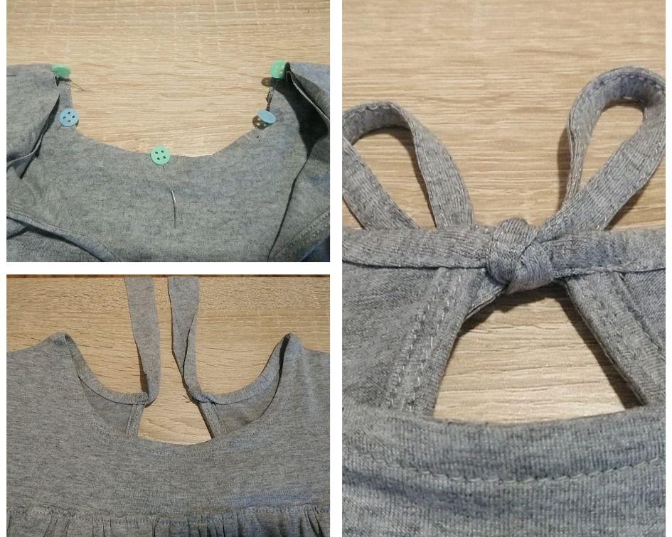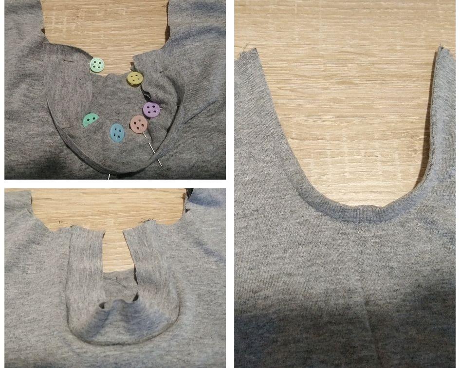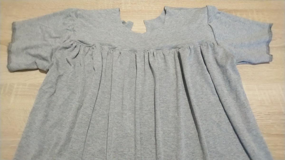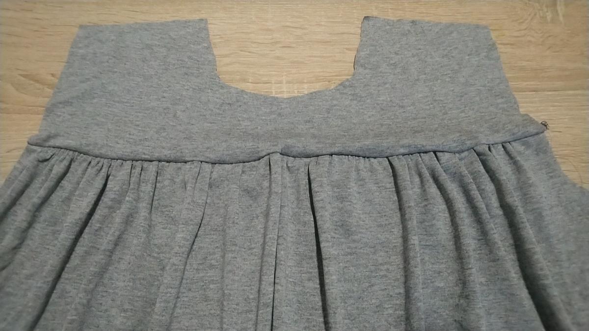 Luego, unimos la parte de arriba delantera con la parte fruncida: