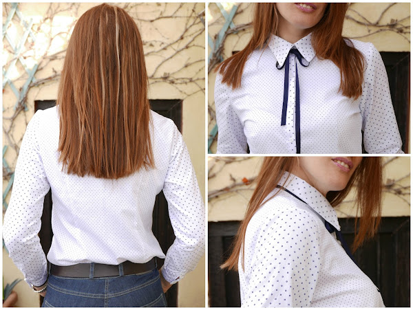 Aquí podéis ver que en realidad la camisa puede llevarse con o sin el lazo. Aunque parezca un detalle senciilo, cambia bastante la prenda.