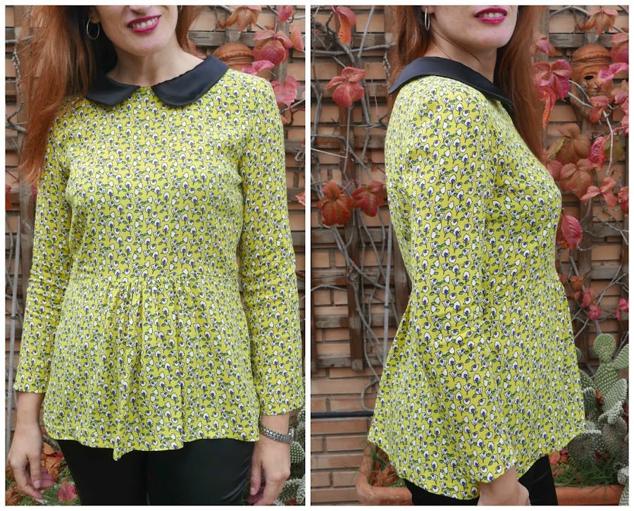 Las ganas que tenía de hacerme una blusa con cuello Peter Pan, por eso cuando vi esta tela de tejidos de moda con un estampado perfilado en negro...ya lo tuve claro! La tela era la indicada.