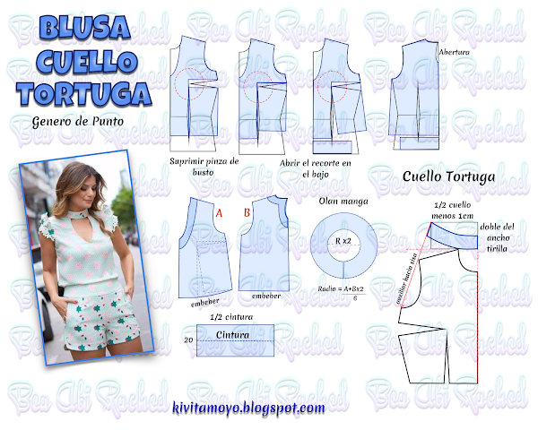 Esrta pieza se corta doble. Va pulida( terminada) en la parte delantera donde se ubica el ecote en V. Luego en el resto del escorte delantero y el trasero se intercala con la vista. Pulir el centro trasero en recto para alli colocar on broche o boton con ojalillo bordado o cola de rata.