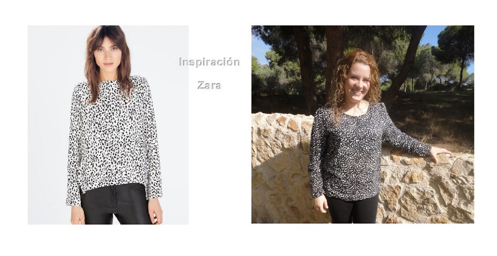 Es el modelo 135 de la revista Burda 02/2013. Aunque haya utilizado este patrón, me he inspirado en esta blusa de Zara.