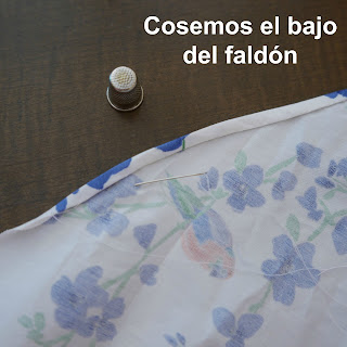 Y para terminar coseremos el bajo del faldón, con finas puntadas a mano o con un pespunte a máquina. ¡Como más nos guste!