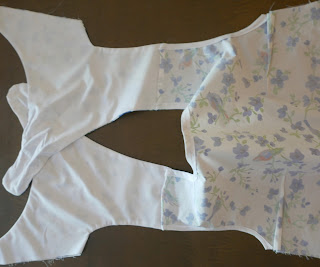 Ahora iremos preparando las piezas de la espalda. Las vamos a hacer cosidas y vueltas.Por eso debemos tener 4 piezas para la espalda, 2 para el exterior y 2 de forro: