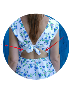 Cómo podéis ver es muy sencilla, pero tiene los detalles justos para no dejar indiferente a nadie . Diseñada con goma en la cintura y en la abertura de la espalda. De ese modo no necesita botones ni cremallera y a la vez la abertura de la espalda no "boquea" y se adapta a la perfección. El faldoncillo, con una ligera caída, más acentuada en la parte de atrás y la espalda anudada que deja ver un poco más de bronceado del que estamos acostumbrados.