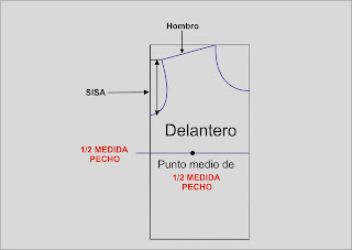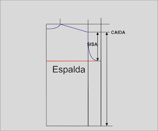 Ahora iremos dibujando el hombro, de la misma longitud que el de la espalda. Y después, la sisa que también irá a medida de la espalda. De este modo todo coincidirá cuando vayamos a coser.