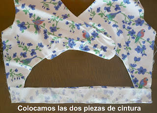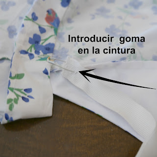 Ahora pasaremos la goma por la pieza de cintura, al ser doble no nos va costar nada hacerlo y así nos aseguraremos un buen ajuste de cintura, sin necesidad de que la blusa lleve cremalleras ni botones.