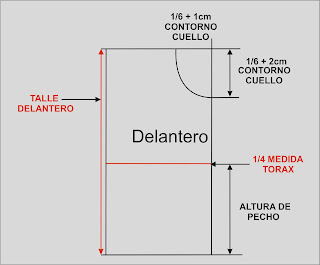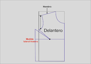 Largo de talle delantero, medida que se toma del comienzo del hombro a la cintura (pasando por el pecho)