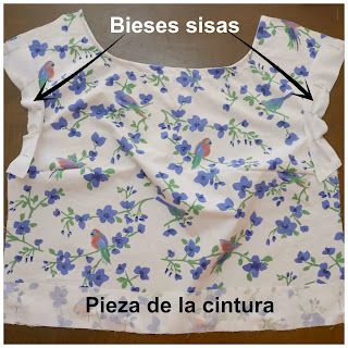 Como podéis ver hemos ido montando y cosiendo el cuerpo de la blusa sin coser los laterales. Algo que haremos más tarde.