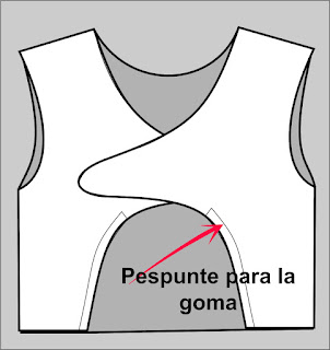 En este dibujo de la espalda podéis ver donde va colocada la goma: