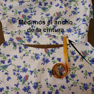 Y después nos centraremos en colocar correctamente los faldones junto a la pieza de cintura. Para ello necesitamos utilizar la cinta métrica y asegurarnos de que vamos dejando siempre el mismo ancho de esta pieza de cintura. Os aconsejo que hilvanéis esta unión para que quede perfecta.