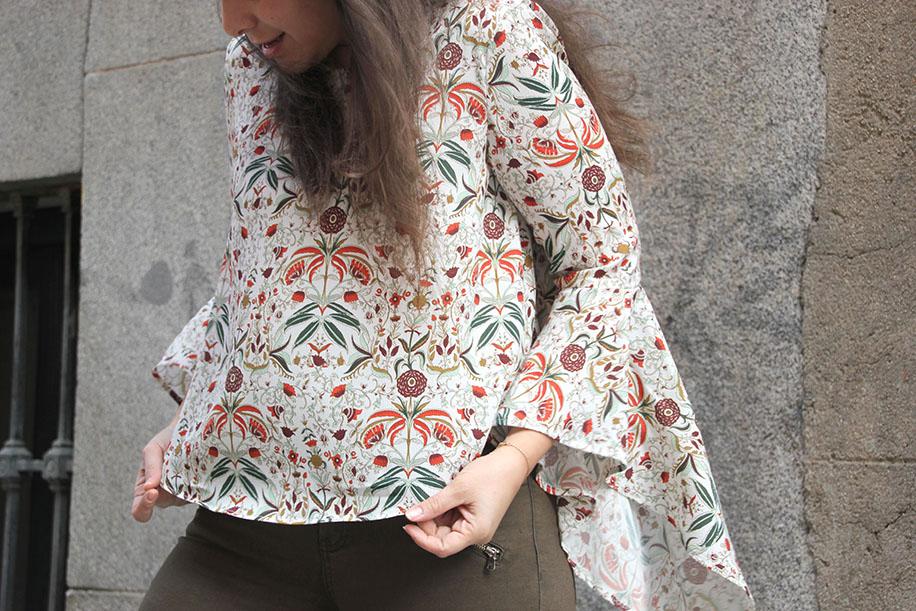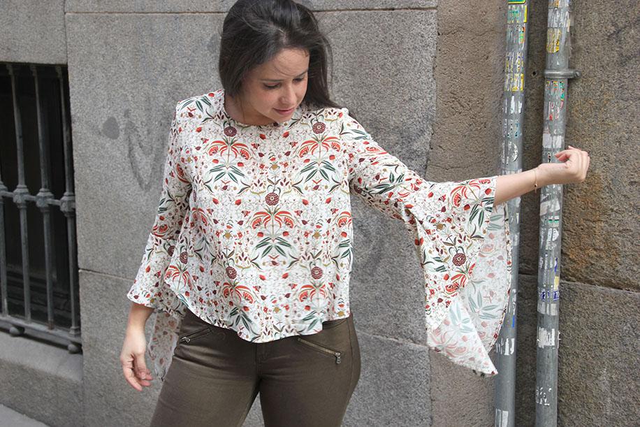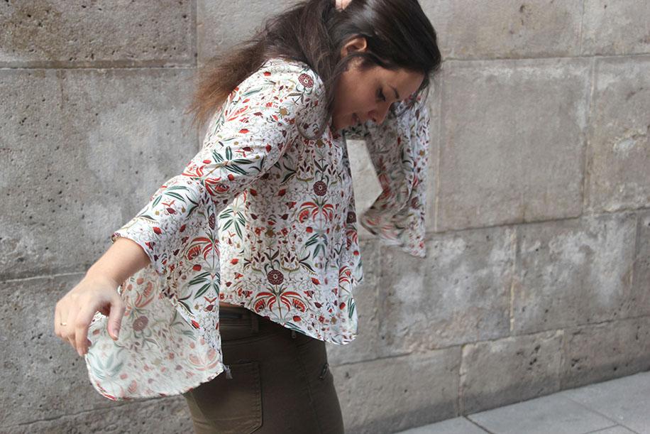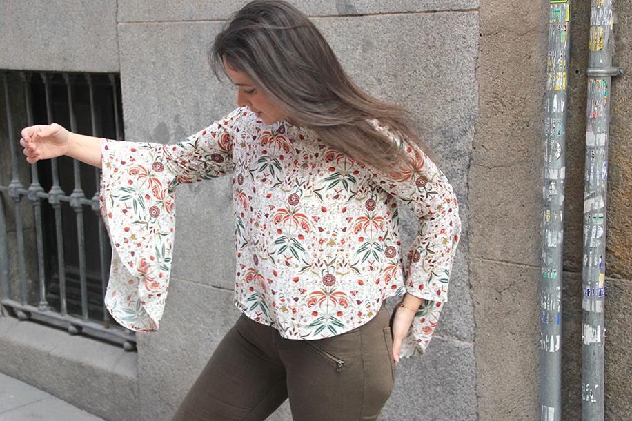 Además es una blusa que no lleva pinzas, en una tela con bastante caída, que no sólo es fácil de manejar, sino que además no se pega al cuerpo y hace más estilizada. Yo soy muy fan de este tipo de blusas, porque tengo mollas o roscas y no me gusta que se me noten
