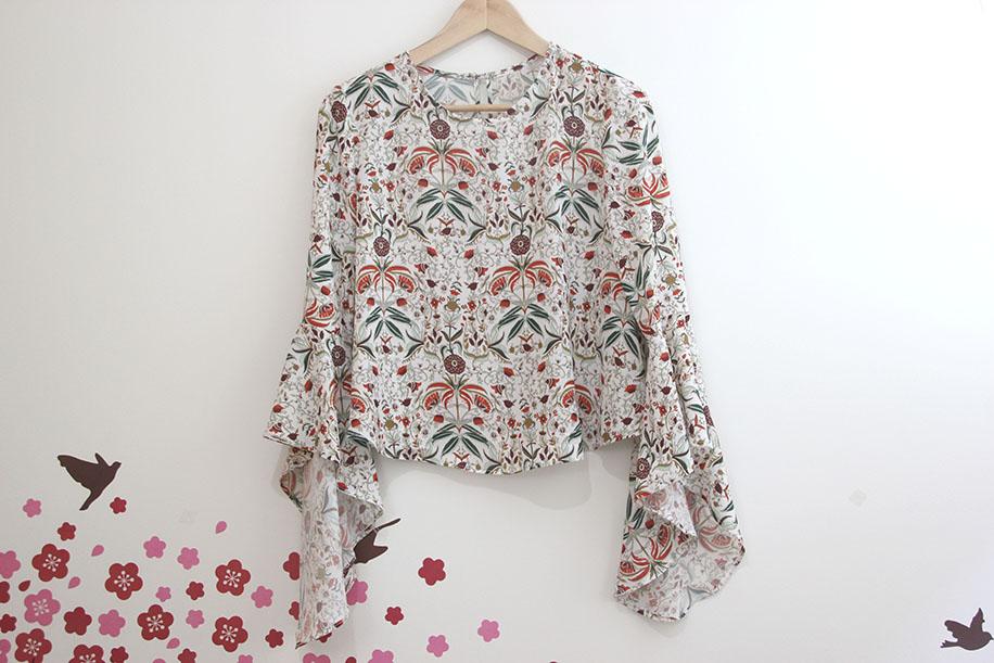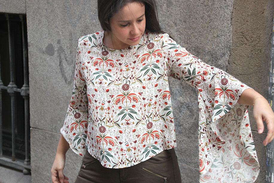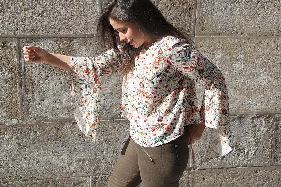 Hoy os quería compartir esta blusa de mujer, las mangas llevan un volante asimétrico estilo japonés. La verdad que los volantes en las magas son tendencias esta temporada. Tengo que decir que es una blusa muy fácil de hacer, las principiantes se pueden atrever sin problemas con esta costura, porque es una confección que no tiene mucha dificultad.