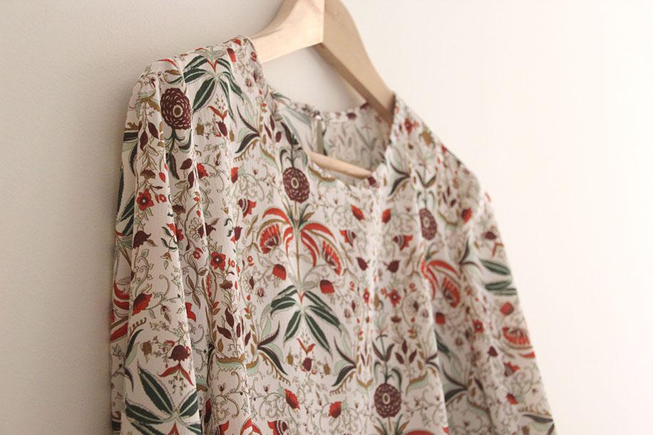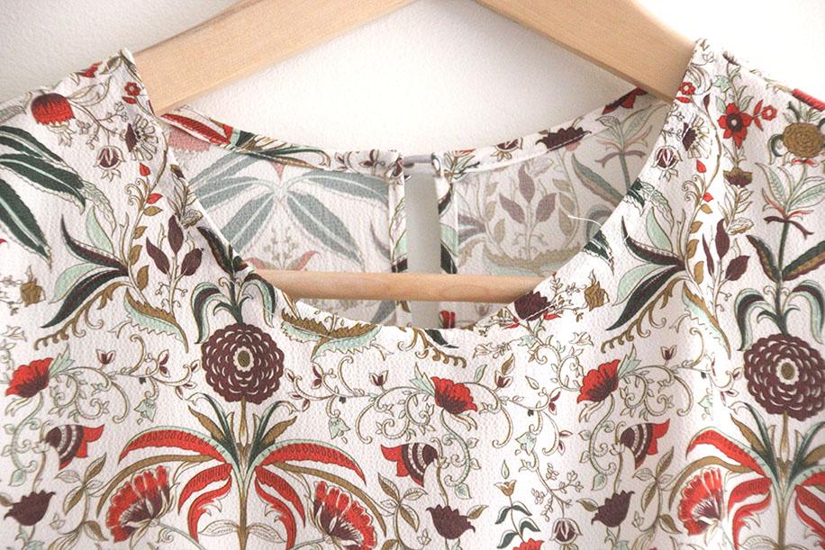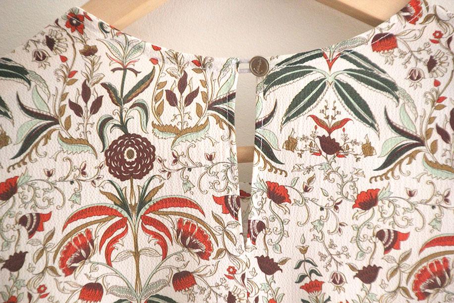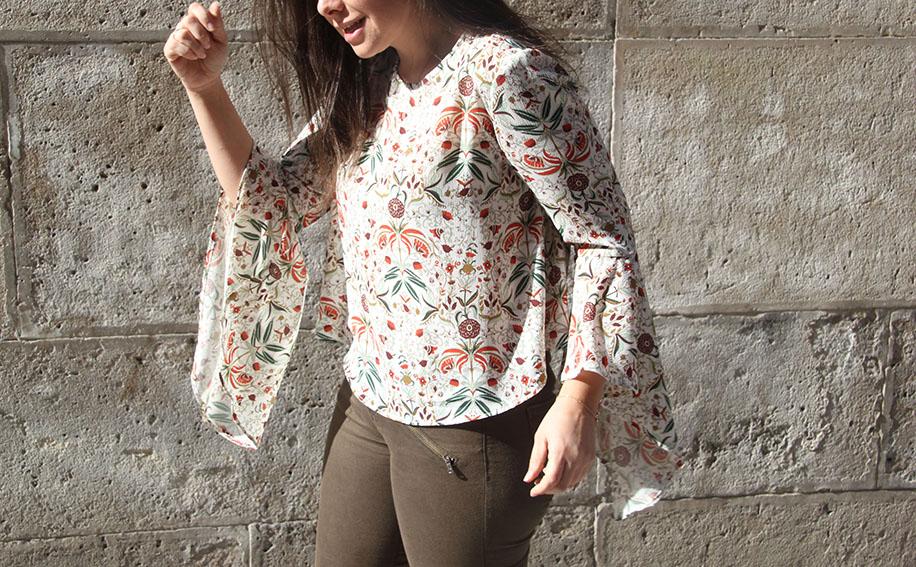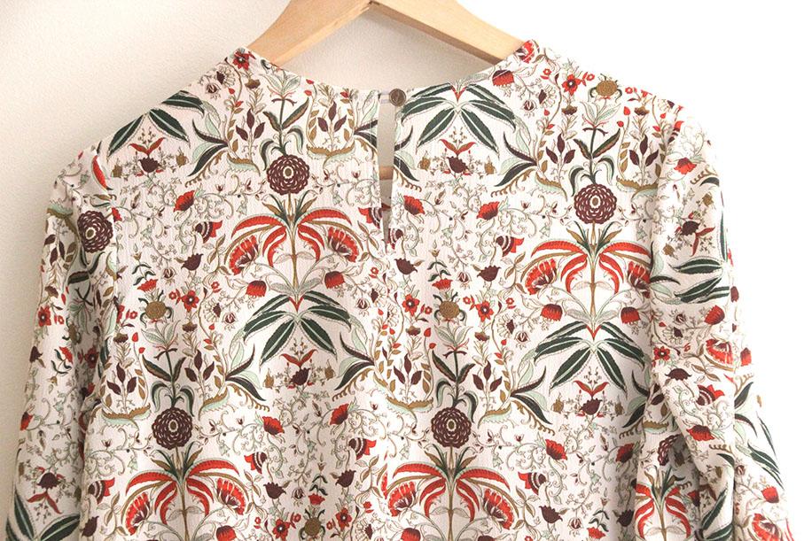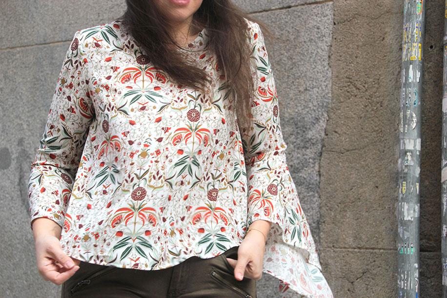 La tela que yo he utilizado para hacer esta blusa es un crepe estampado. La compré en Retales Lidia, una tienda que hay en Vigo por la que siento un especial cariño. Tienen unas telas y unos estampados espectaculares. Como no venden todas los estampados online.