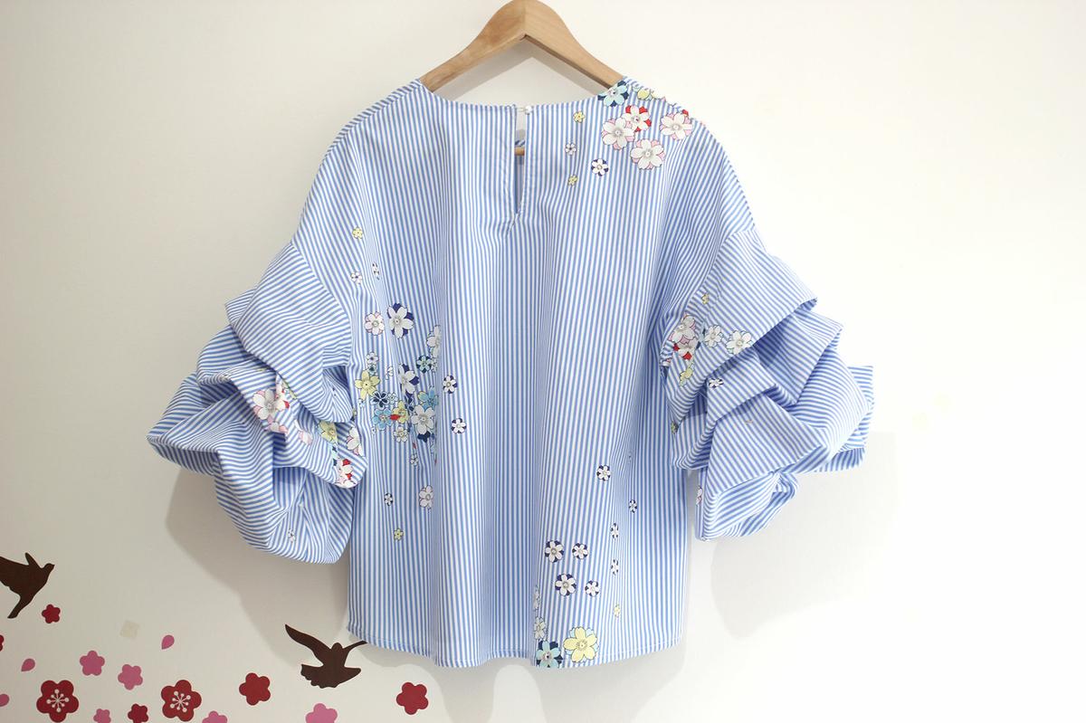 Esta blusa con mangas abullonadas es el resultado del vídeo en el que explicaba cómo realizar el proceso creativo de las prendas, os lo dejo por aquí si queréis echarle un vistazo.
