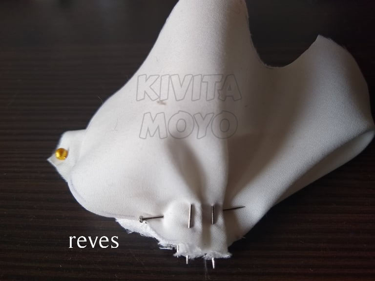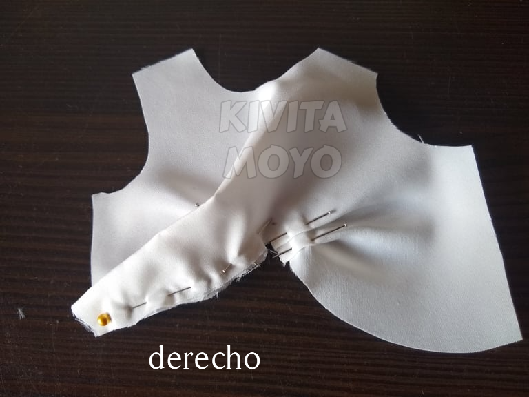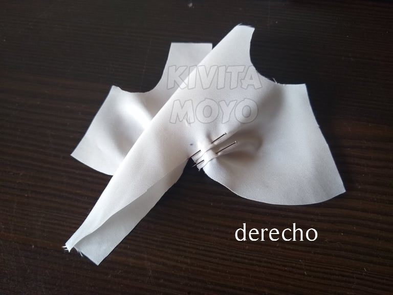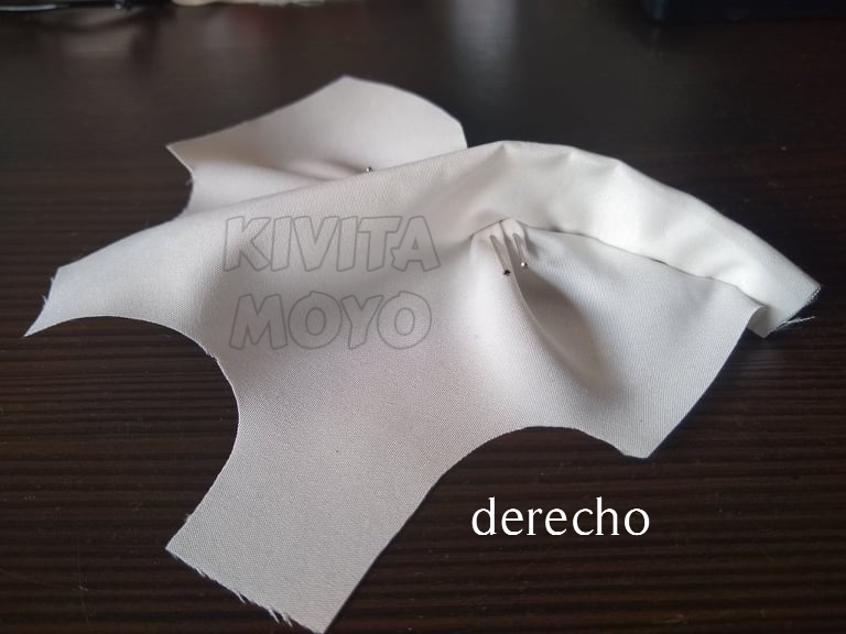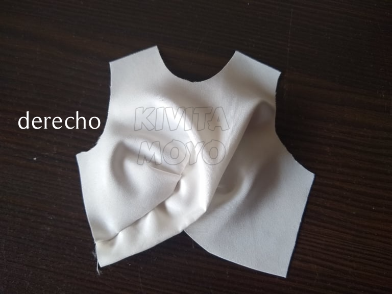 Desde el derecho plegar sobre si la pieza central , haciendo que las zonas de los drapeados queden cercanas.