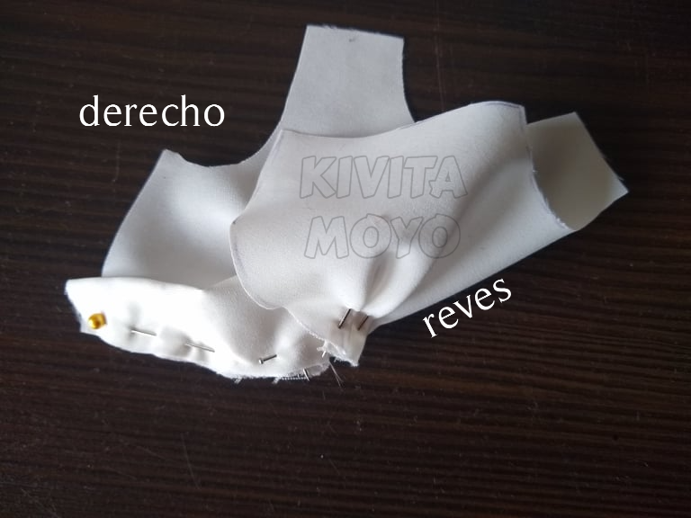 He puesto las palabras derecho ( rigth side) y revés ( wrong side) para mejor comprensión de la posicion de la pieza.