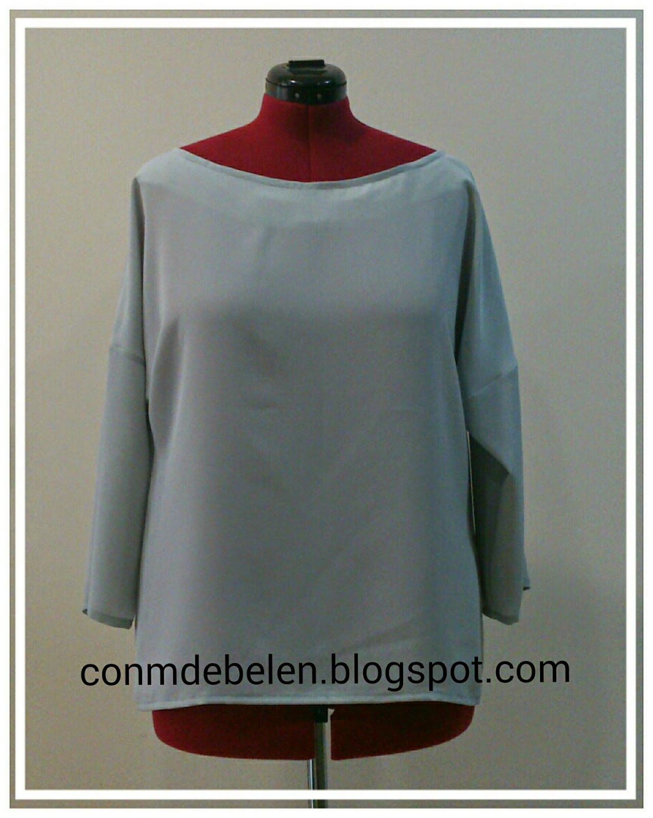 .... y yo sigo llenando mi armario, esta vez es una blusa, muy sencilla, de la revista Patrones (no recuerdo de cual, editaré...), cuello barco, hombro caído, amplia.....muy cómoda.