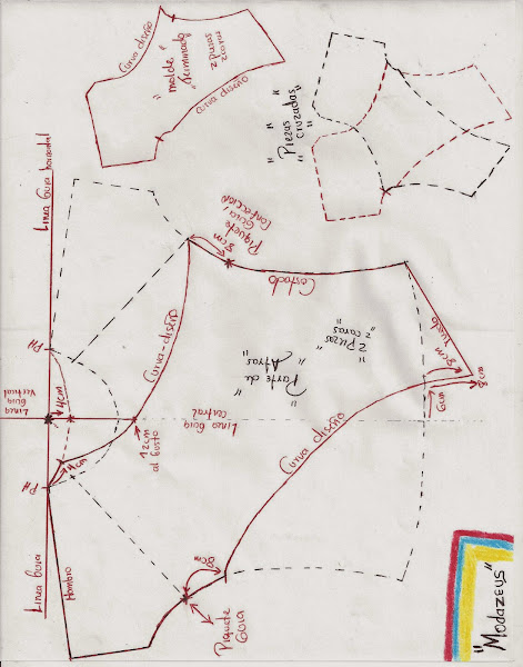 nota: en la parte de atrás no le damos aumentos de costura, por que cuando copiamos el delantero ya este tenia sus respectivos aumentos de costura.