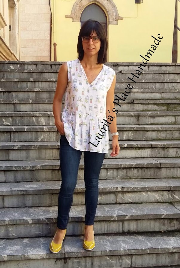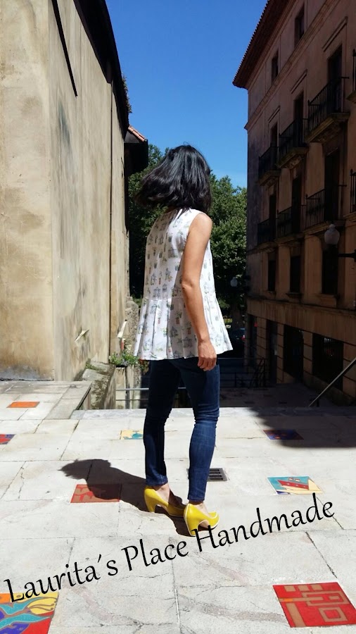 Ha sido muy fácil de coser, ya que no tiene grandes complicaciones...y me gusta la forma del hombro que lleva la costura ligeramente desplazada hacia adelante.