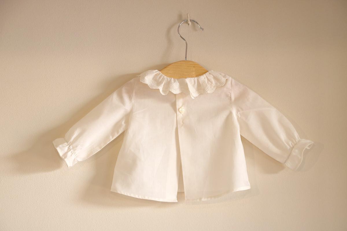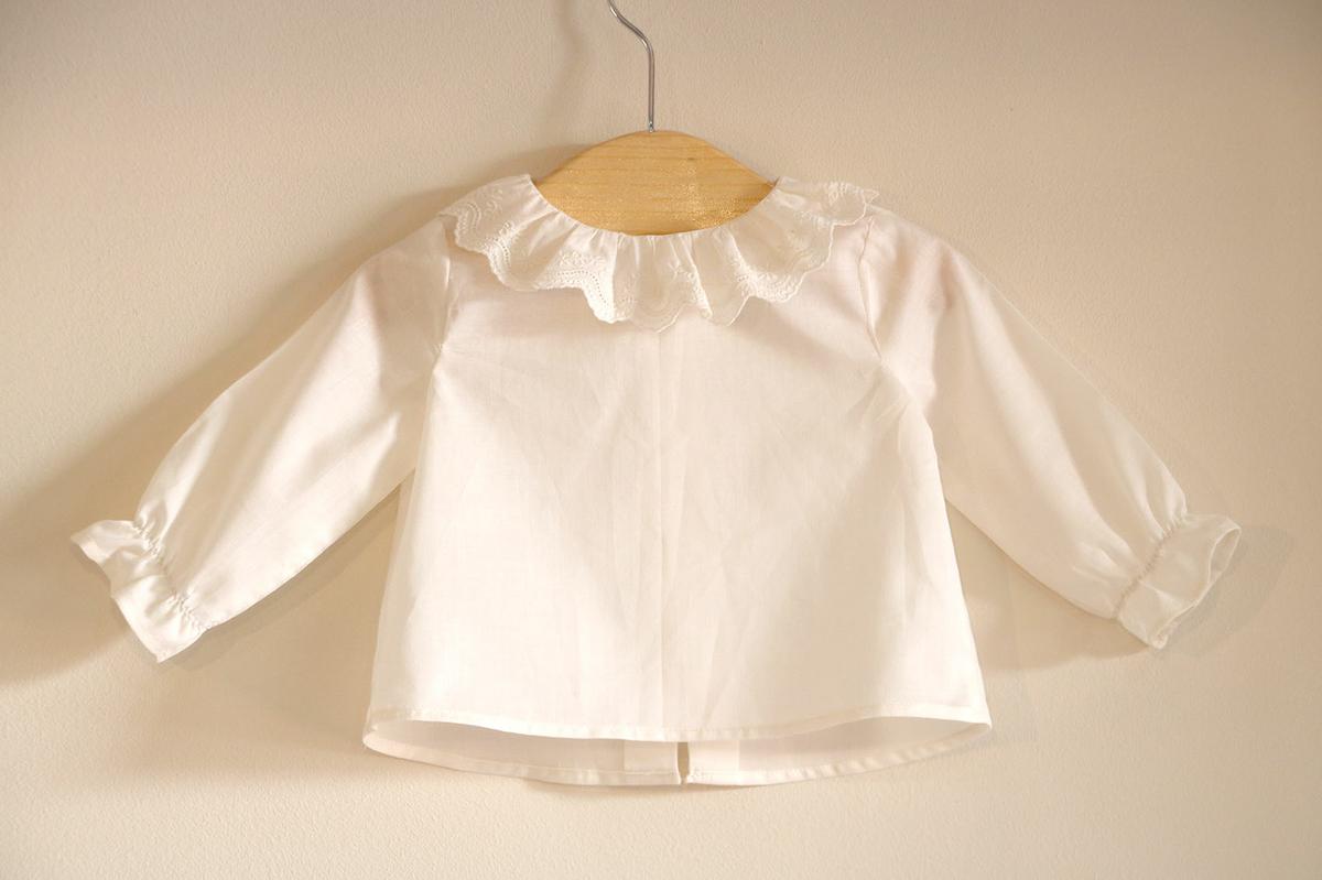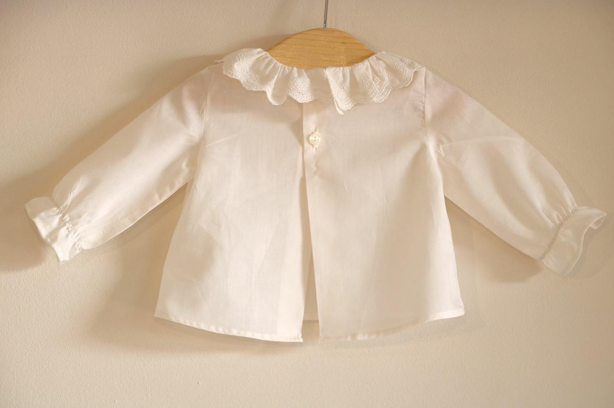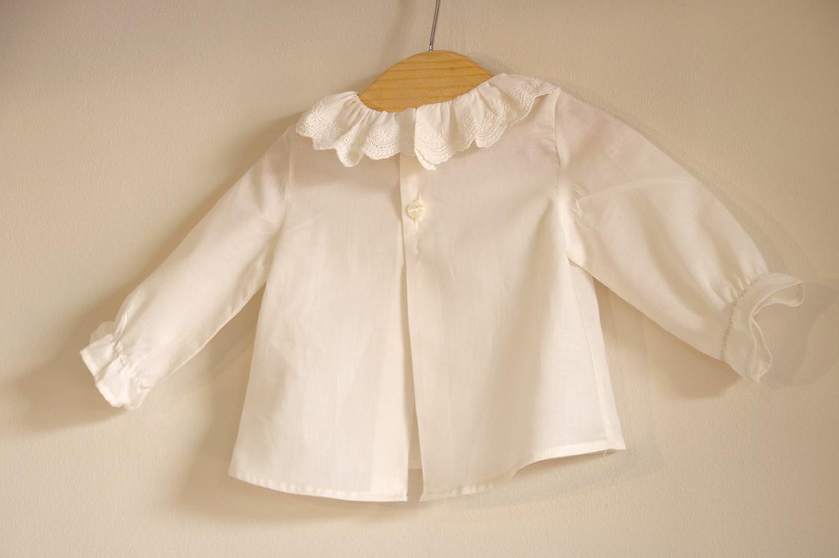 La tela que he elegido es la típica para este tipo de blusitas de bebé, una batista que es una tela suave y finita para los más peques. Para esta blusa también podéis utilizar algodón, popelín, viyela, plumeti, vichy….