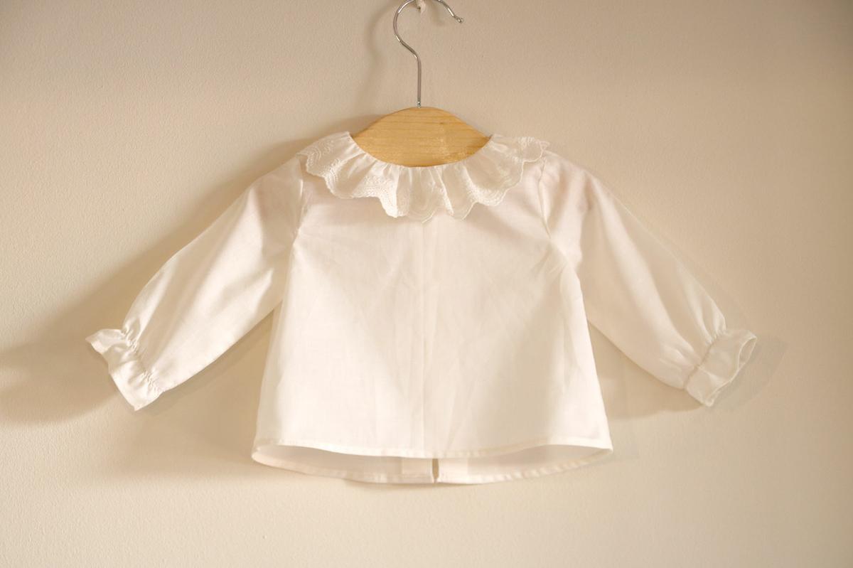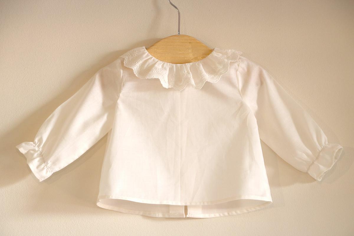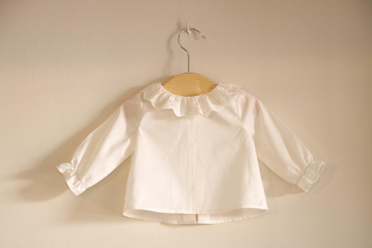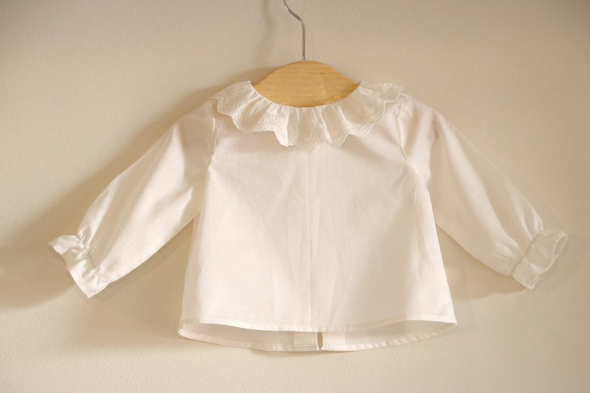 La tela que he elegido es la típica para este tipo de blusitas de bebé, una batista que es una tela suave y finita para los más peques. Para esta blusa también podéis utilizar algodón, popelín, viyela, plumeti, vichy….
