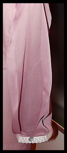 inicialmente pensé en poner un puño y hacerla un poco farol, pero cuando la probé me gusto como quedaba suelta y me limite a ponerla una puntilla acorde con el cuello, a hacer una pala bien planchada y culminar con unos preciosos botones de nácar en forma de corazón.