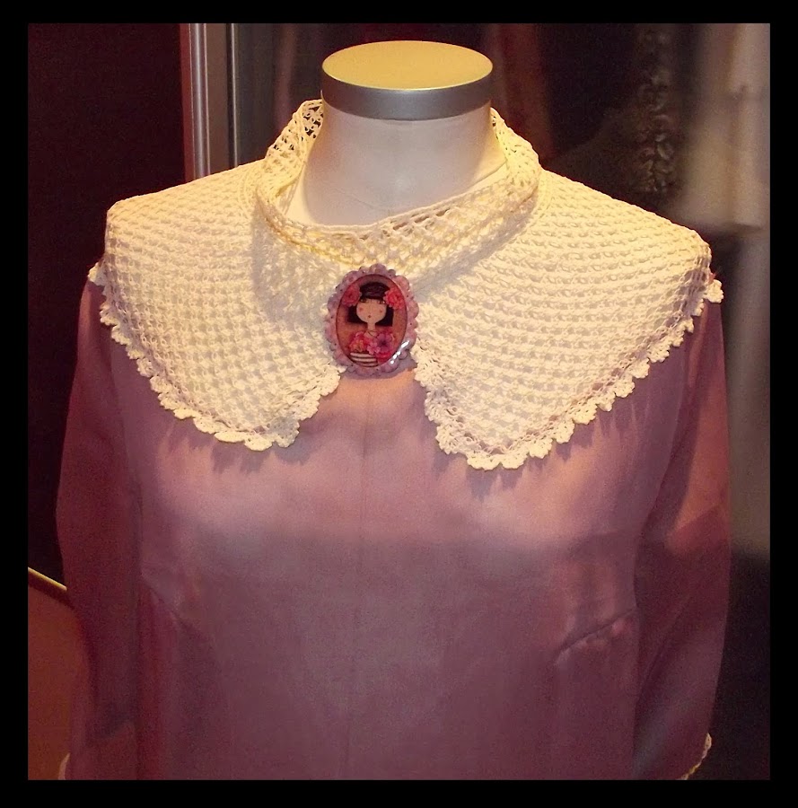 Este cuello de no se si...ganchillo, bolillos o algo que se llama lanzadera (que no tengo ni la menor idea de lo que es) me tiene enamorada desde que era niña, siempre me ha parecido delicado y original, es una joya vintage maravillosa que tiene muchos mas años que yo.
