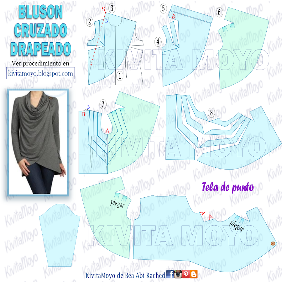 *Les recuerdo que a continuación se ve un esquema de una lección de transformaciones. No son patrones, no se descargan, y no verán talles. Es la interpretación libre que yo hago del modelo, por lo tanto esta sujeto a modificación según sus necesidades y gustos. Leer las indicaciones observando el proceso en el dibujo, para lograr el diseño.