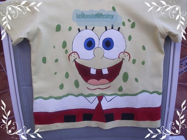 le he cogido el gustillo a pintar camisetas,esta es para Javier mi nieto,como ve que todo es para su futura hermanita,pues para que no coga pelusilla antes de tiempo,le he pintado al personaje de sus dibujos favoritos,espero os guste,a mi me gusta como me ha quedado