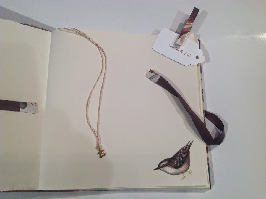 Libros de firma cuadrados y etiqueta con pinza para diferenciar cada libro en la mesa