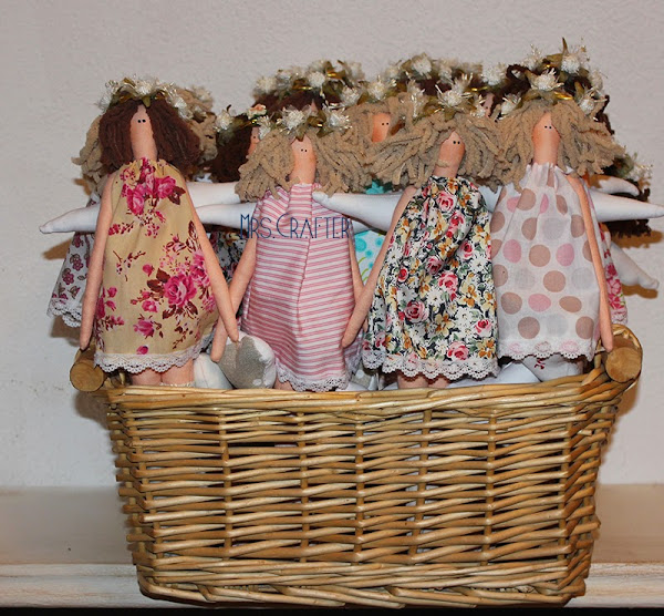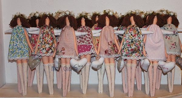 Comenzamos con las "mini tildas", las diseñé para ella, y las personalizamos con el nombre bordado en el corazón, de la persona para la que sería, rubia o morena.