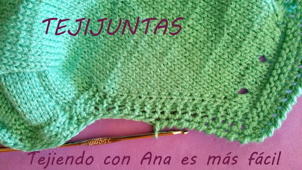 Montar 20 puntos y trabajar 5 vueltas a punto bobo,continuar trabajando con 3 puntos bobos el los laterales y jersey en los 14 centrales, TRABAJAR 2 VUELTAS con esa distribución y en la 3º comenzar los 3 ojales : 4 puntos derecho+2 puntos juntos derecho,hebra o aumento, 3 puntos derecho+, repetir de + a + una vez y terminar con 2 puntos juntos derecho, hebra, 4 puntos derecho, EN LA 5º VUELTA, DEL PUNTO JERSEY, COMENZAR LOS AUMENTOS (esta parte como veis es más larga)