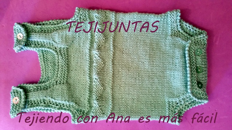 COMENZAMOS A TEJER POR LA ENTREPIERNA DELANTERA a 2 agujas, montando para el delantero 20 p, con 5 vueltas a punto musgo, para la cenefa de abrochado.