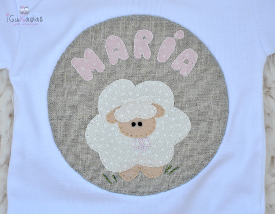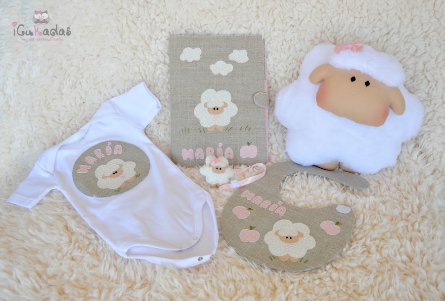 Hemos ampliado la colección de la oveja, empezó con un babero y un chupetero, que podéis ver AQUÍ , en rosa o en azul y continuó con un cojín-muñeco para cuna que también tenéis AQUÍ , la oveja Canela.