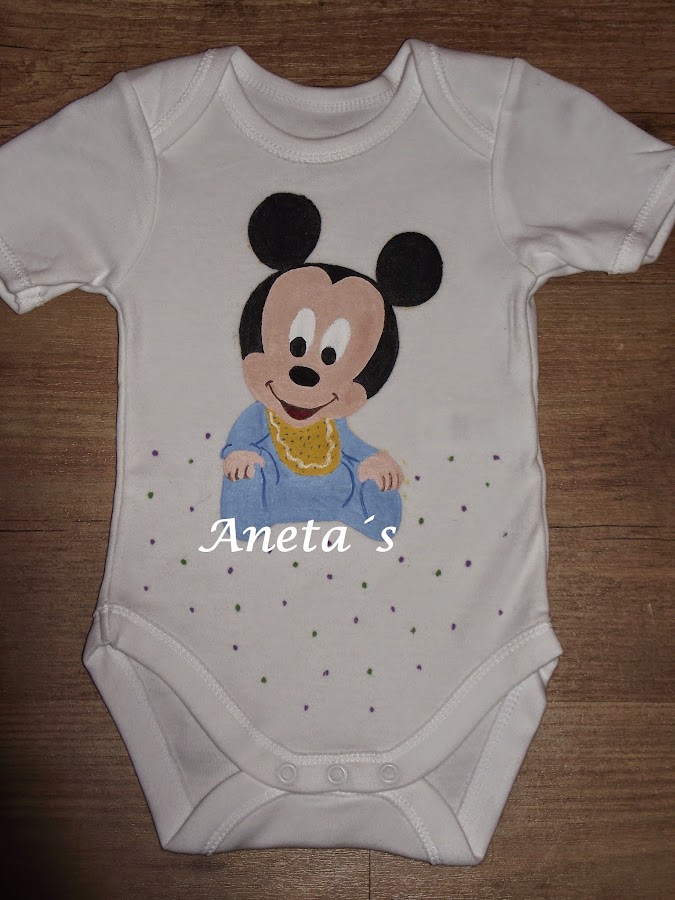 Bodys pintados con pincel de Mickey y Minni bebés.