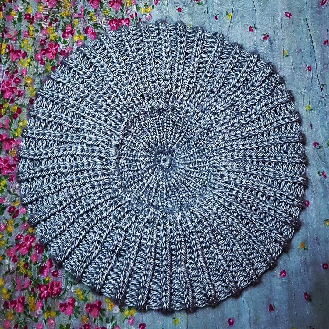 Con una aguja de coser lana y la hebra larga que se dejó al comenzar el tejido, fruncir al máximo los 41 puntos iniciales (pasar la hebra, con ayuda de la aguja, por dentro de cada uno de los 41 puntos y tirar fuertemente) y coser luego, con esa misma hebra, ambos bordes laterales de la boina.