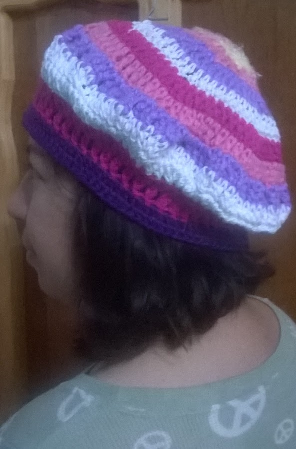 Otro día ordenando los estambres me decidí a usar los restos que rondaban todos enredados entre si, que lo más difícil de usarlos era quitar los nudos, pero el resultado es este, lo usaremos mi hija y yo indistintamente, no me da pena andar con estos colores jijijiji.