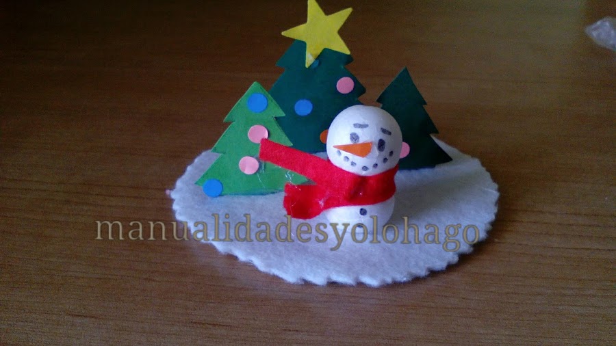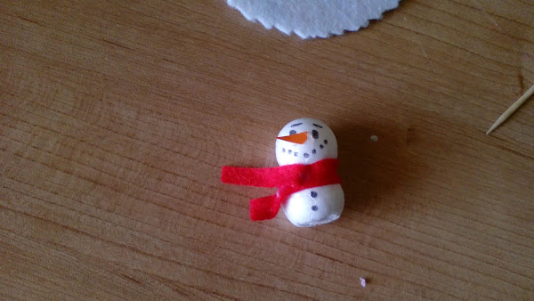 - Fieltro blanco y rojo (para la base y la bufanda del muñeco de nieve)