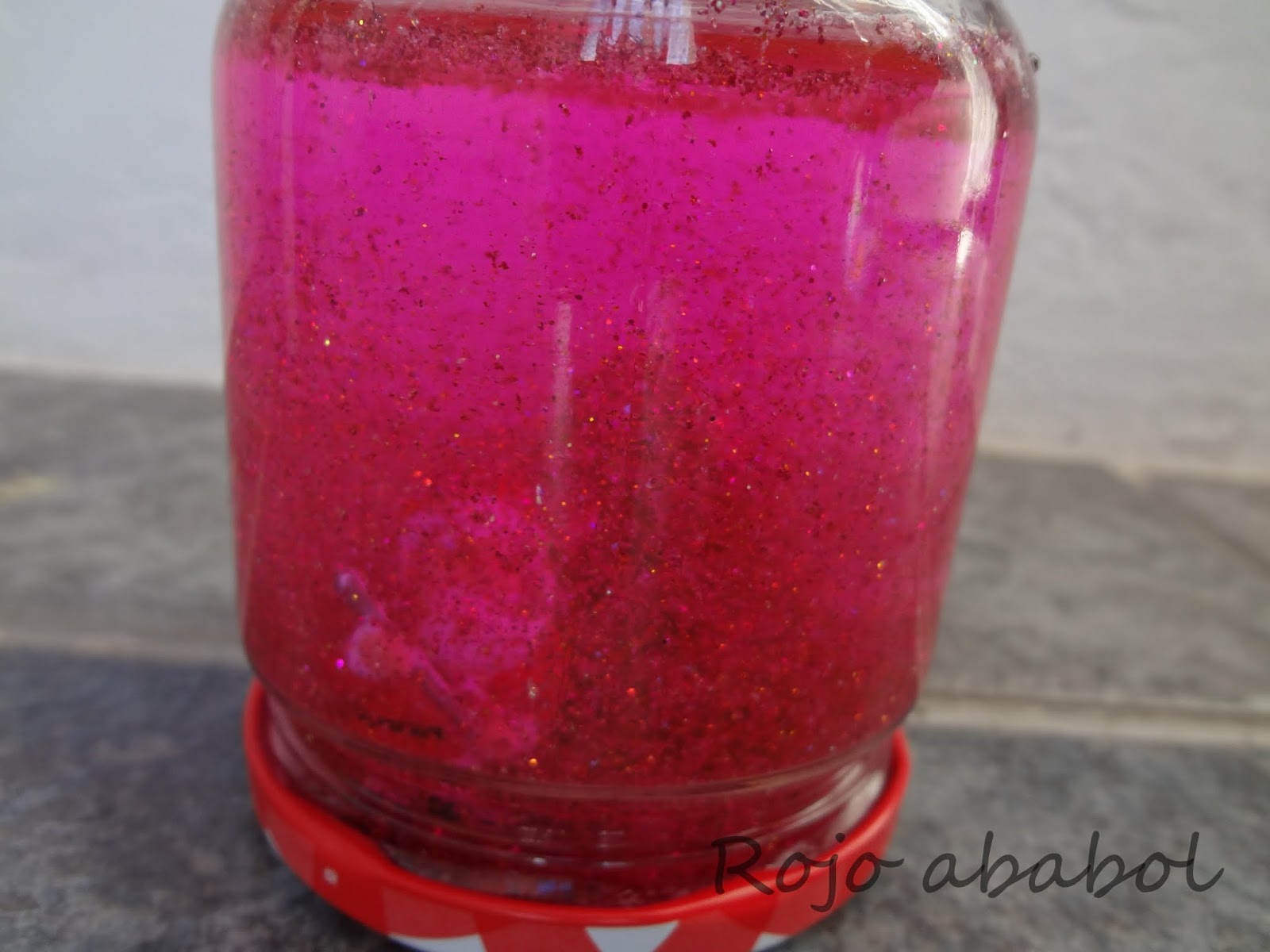 Es lo que tiene la purpurina de color bien potente... que luego agitas el bote y no se ve nada más que una ventisca de brillos fucsia... jajajajaja
