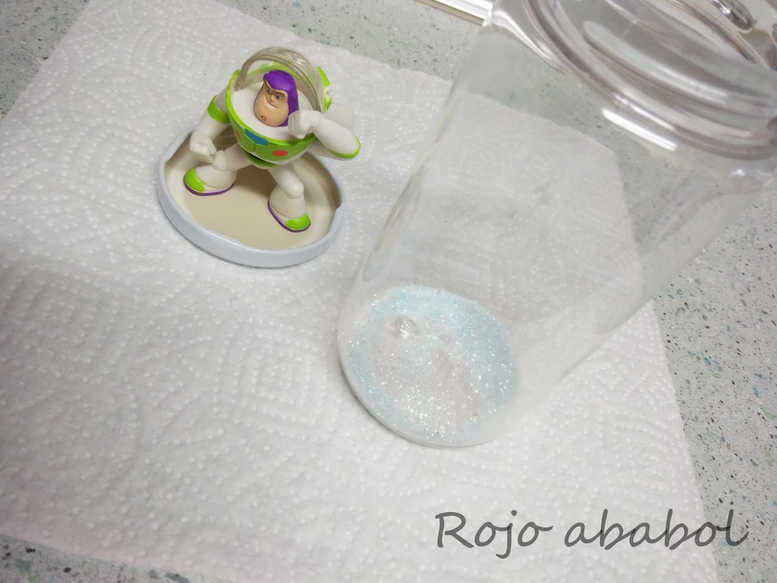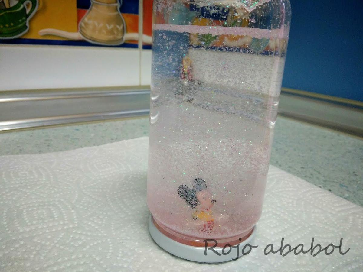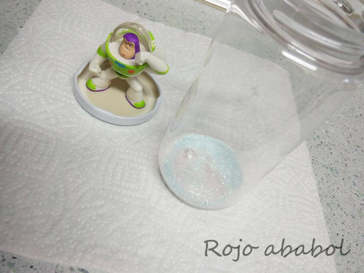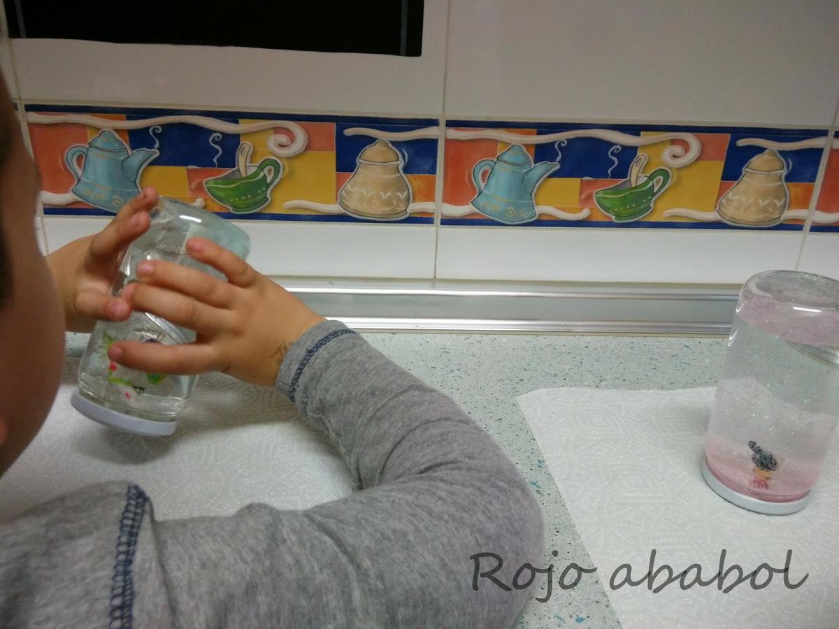 Así que nos dispusimos el bollito y yo a preparar todo para fabricar nuestra super bola de nieve y purpurina.