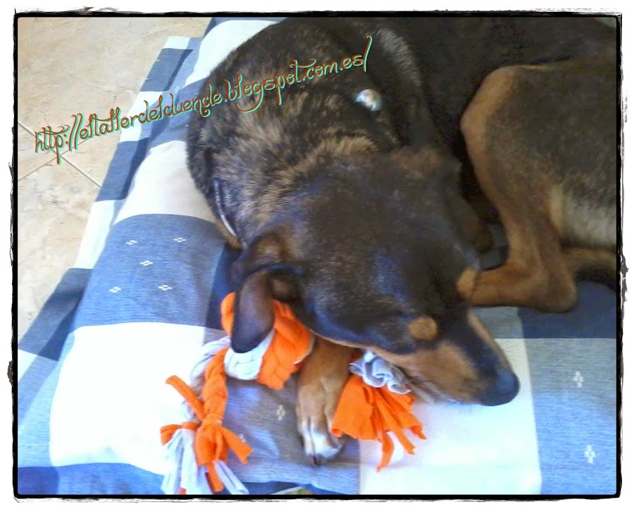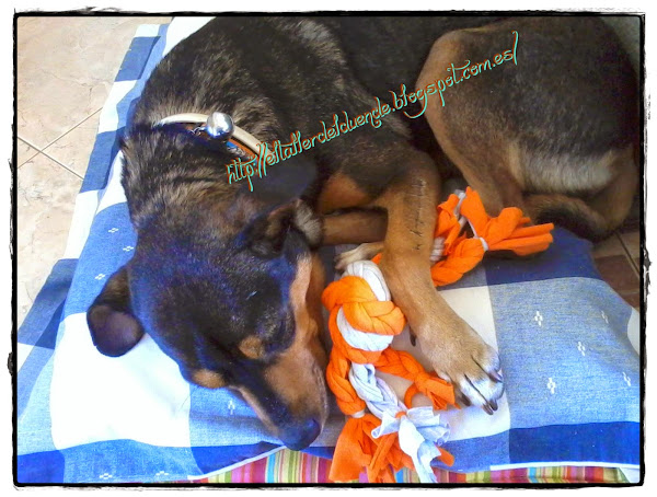 Primero confeccionar un juguete perruno de forma artesanal y de paso reducir y reconvertir ropa en desuso acumulada inteligentemente para estos menesteres,,,