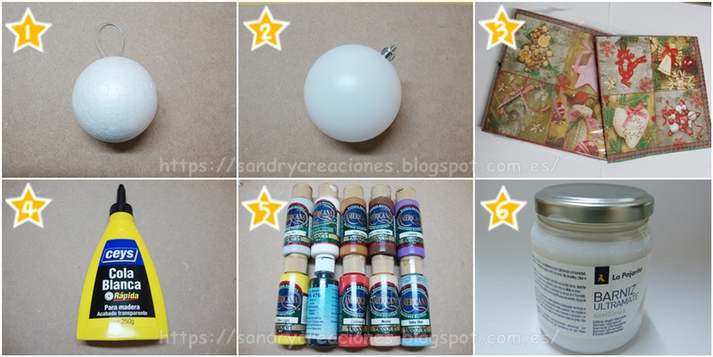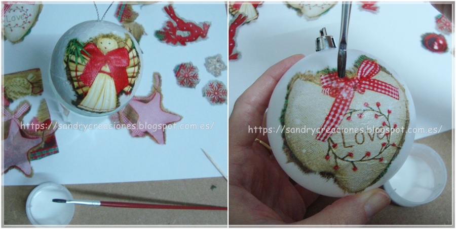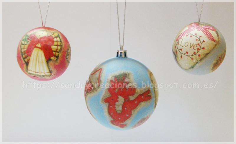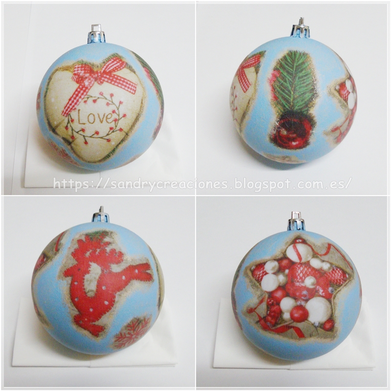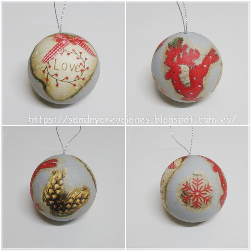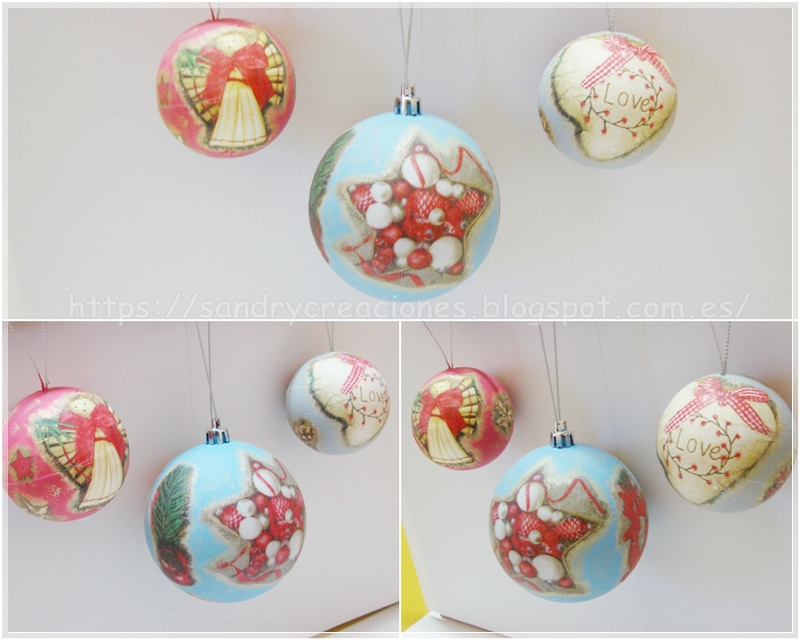 Cuando las compramos no sabíamos bien como decorarlas pero, al ir a hacer la compra quincenal, nos topamos con unas servilletas navideñas muy bonitas que no pudimos resistirnos a meter en el carrito y a raíz de eso se nos iluminó la bombilla, haríamos bolas decoradas con decoupage.
